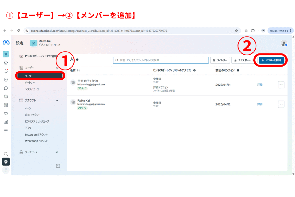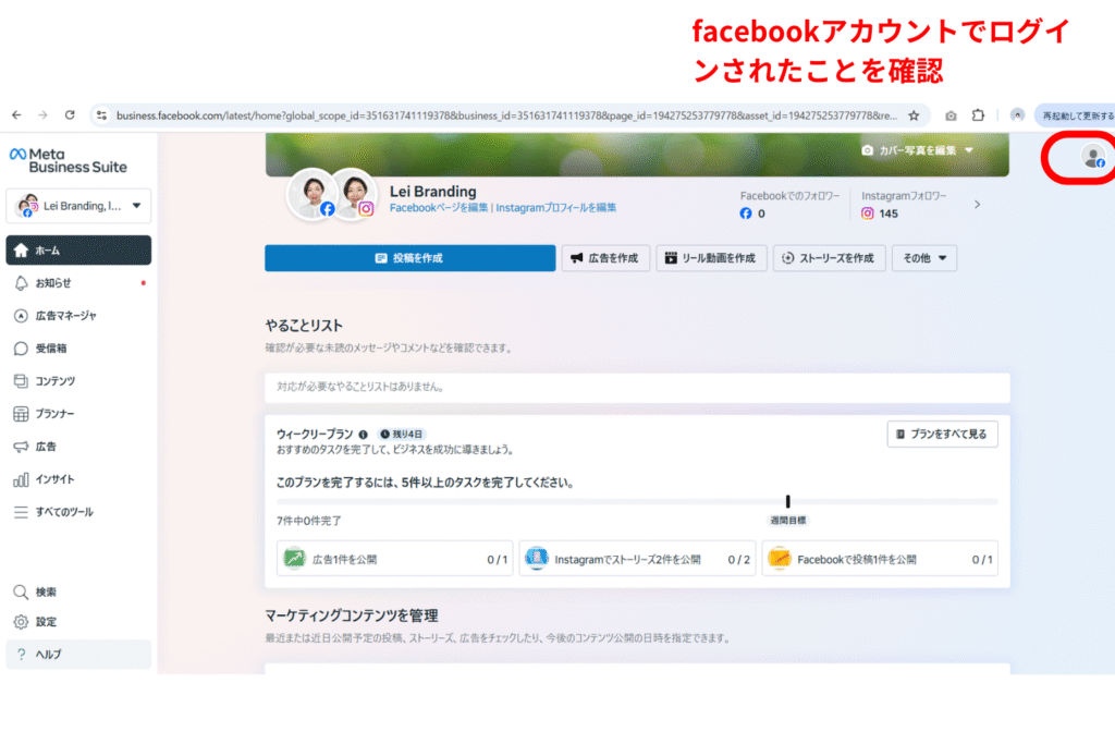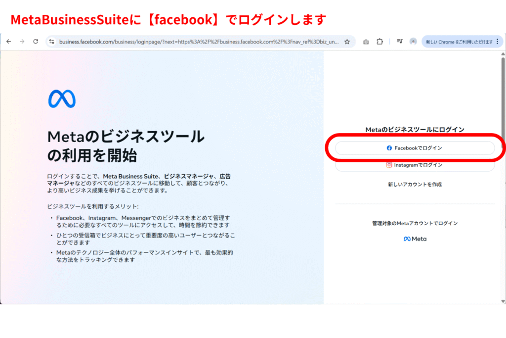 STEP1|Meta Business Suiteに「Facebookアカウント」でログイン