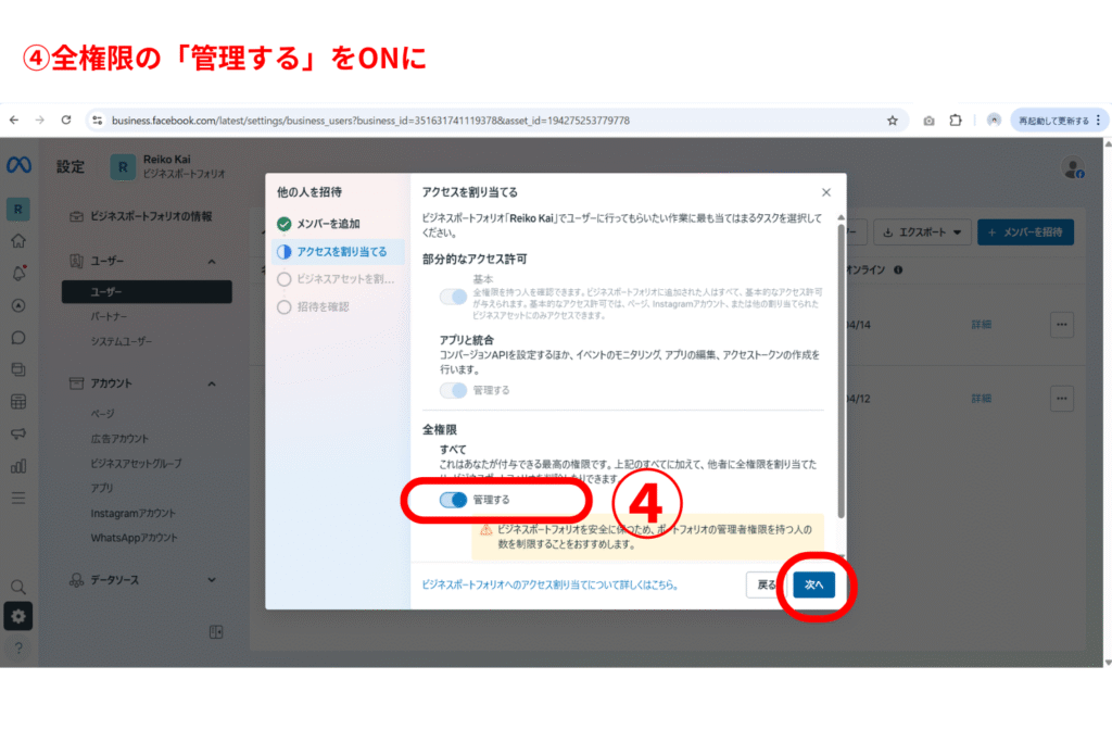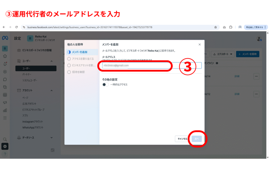 「スタッフ権限として私を招待 → 運用完了後に削除」