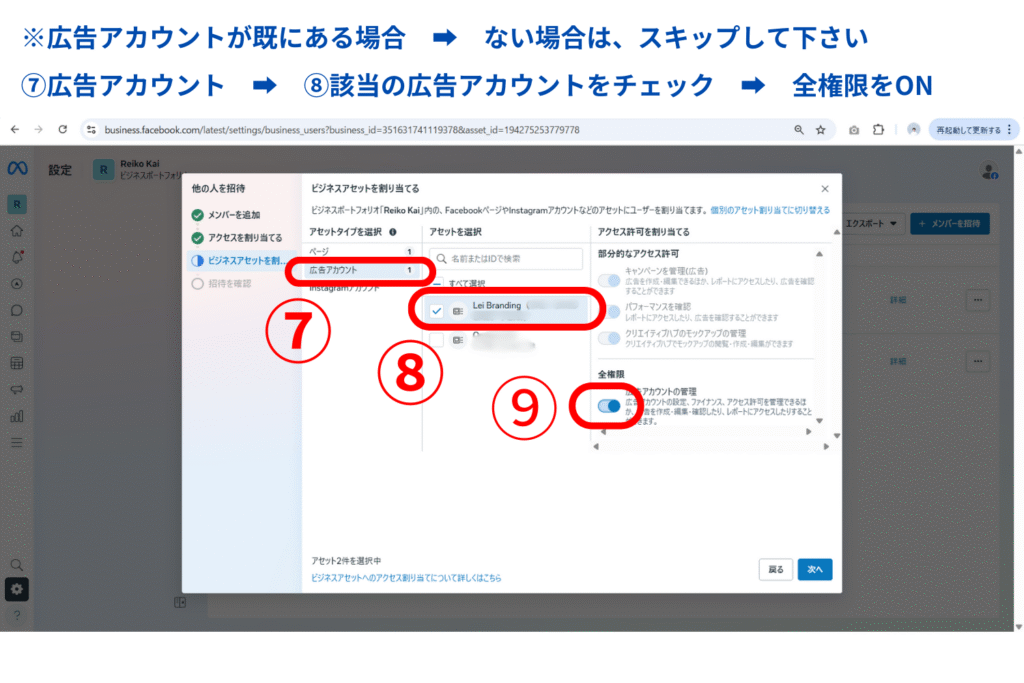 多くの広告代理店は、企業側で管理している広告アカウントを使用するケースも多いですが、私は 「お客様ご自身の広告アカウント」で広告運用を行う ことを基本スタンスにしています。