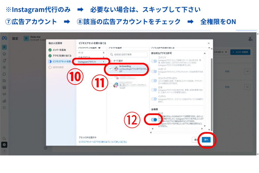 今回は、Instagram/Facebookの広告(META広告)で、運用代行を依頼する際に必ず必要になる「権限付与」 の方法をまとめます。