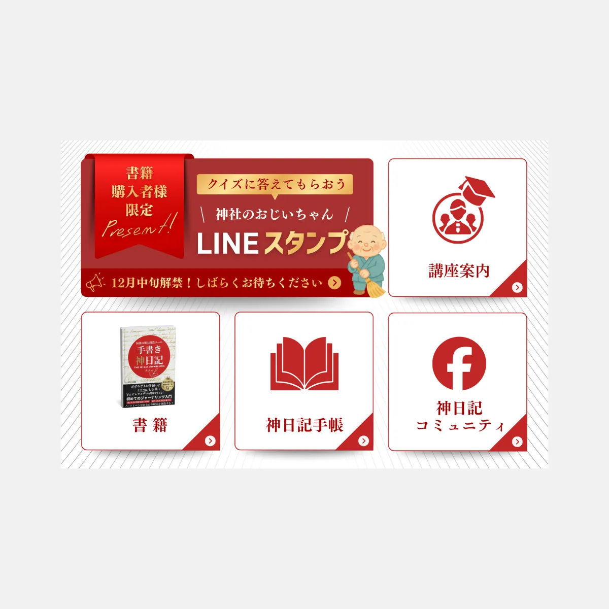 LINE公式 いきがい出版様のLINE公式の制作をさせていただきました 2025年12月15日 2025年12月31日 reico 2025.11月いきがい出版様から発行「手書き神日記」の出版と合わせてLINE公式の制作を担当させていただきました。 LINE公式 ■ いただいたお客様の声 いきがい出版様急なお願いにも関わらず、迅速に対応していただき本当にありがとうございました。 できたデザインもとても素敵でした。 マーケティングのアドバイスもいただけました。 とてもおすすめしたいサービスです。