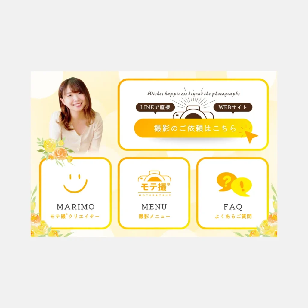 LINE公式 モテ撮クリエイターMARIMO様のLINE公式を制作させていただきました 2025年3月19日 2025年11月19日 reico 2025.4月モテ撮クリエイターMARIMO様のLINE公式を制作させていただきました LINE公式 ■ いただいたお客様の声 &Herb様とても丁寧なヒアリングをしていただき、大満足です。 また仕上がったものも、理想通りで素晴らしかったです。 この度はありがとうございました!
