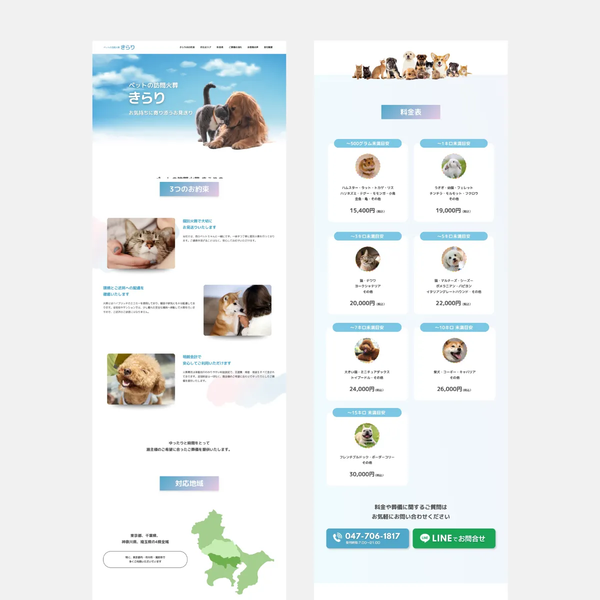 LP制作 ペット訪問火葬きらり様のLPサイトを制作させていただきました 2025年6月11日 2025年11月26日 reico 2025.6月ペット訪問火葬きらり様のLPサイトを制作させていただきました Lit.link 実際のサイトはこちら ■ いただいたお客様の声 ペット訪問火葬 きらり様ありがとうございます!とっても素敵です!迅速に素晴らしいLPを作っていただきましたこと感謝いたします。