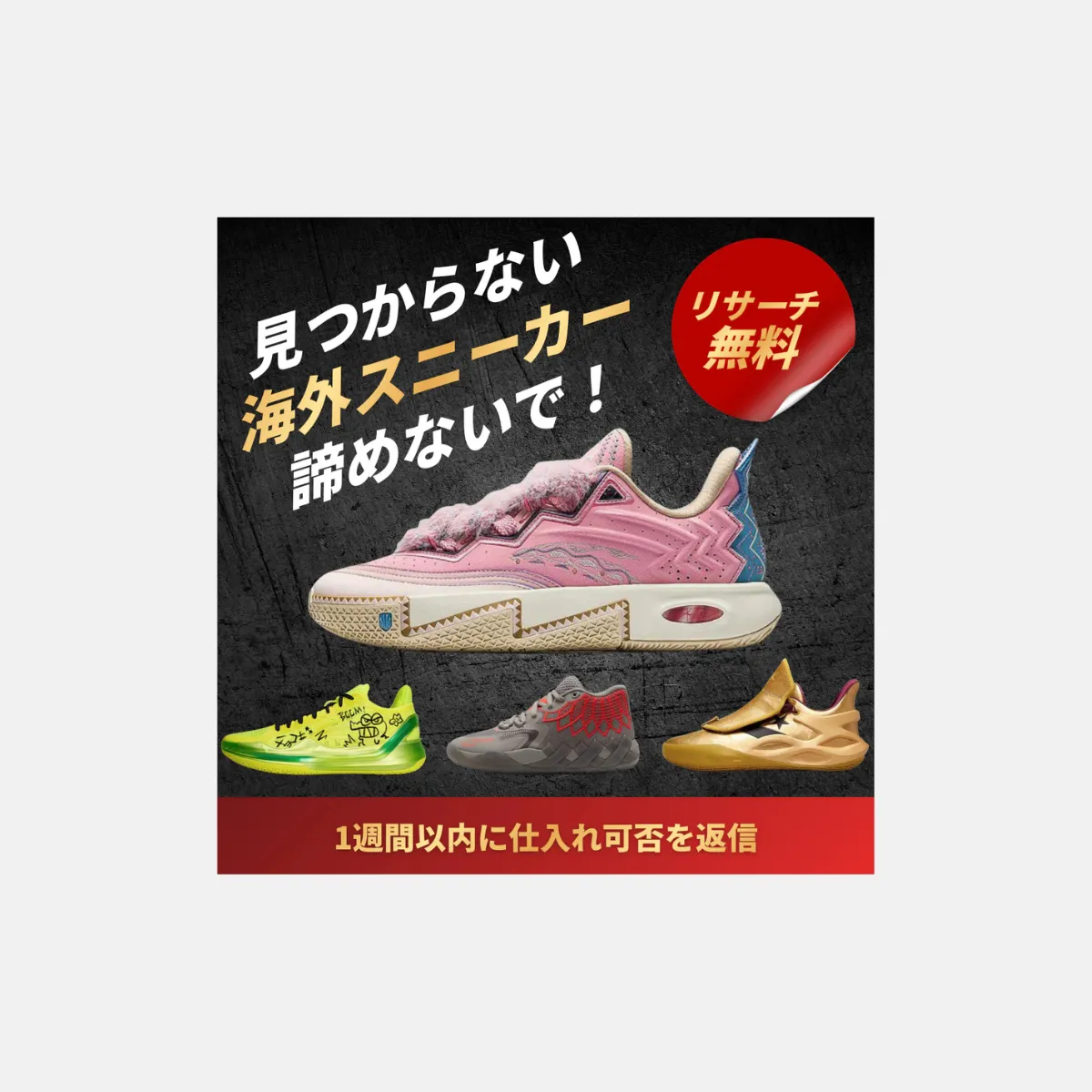 デザインその他 海外スニーカー販売Tenpalm様のMETA広告クリエイティブを制作いたしました 2026年1月14日 2026年2月22日 reico 2025.12月海外スニーカー販売Tenpalm様のMETA広告クリエイティブを制作いたしました META(Instagram) ■ いただいたお客様の声 Tenpalm様とても丁寧親切にご対応いただきました